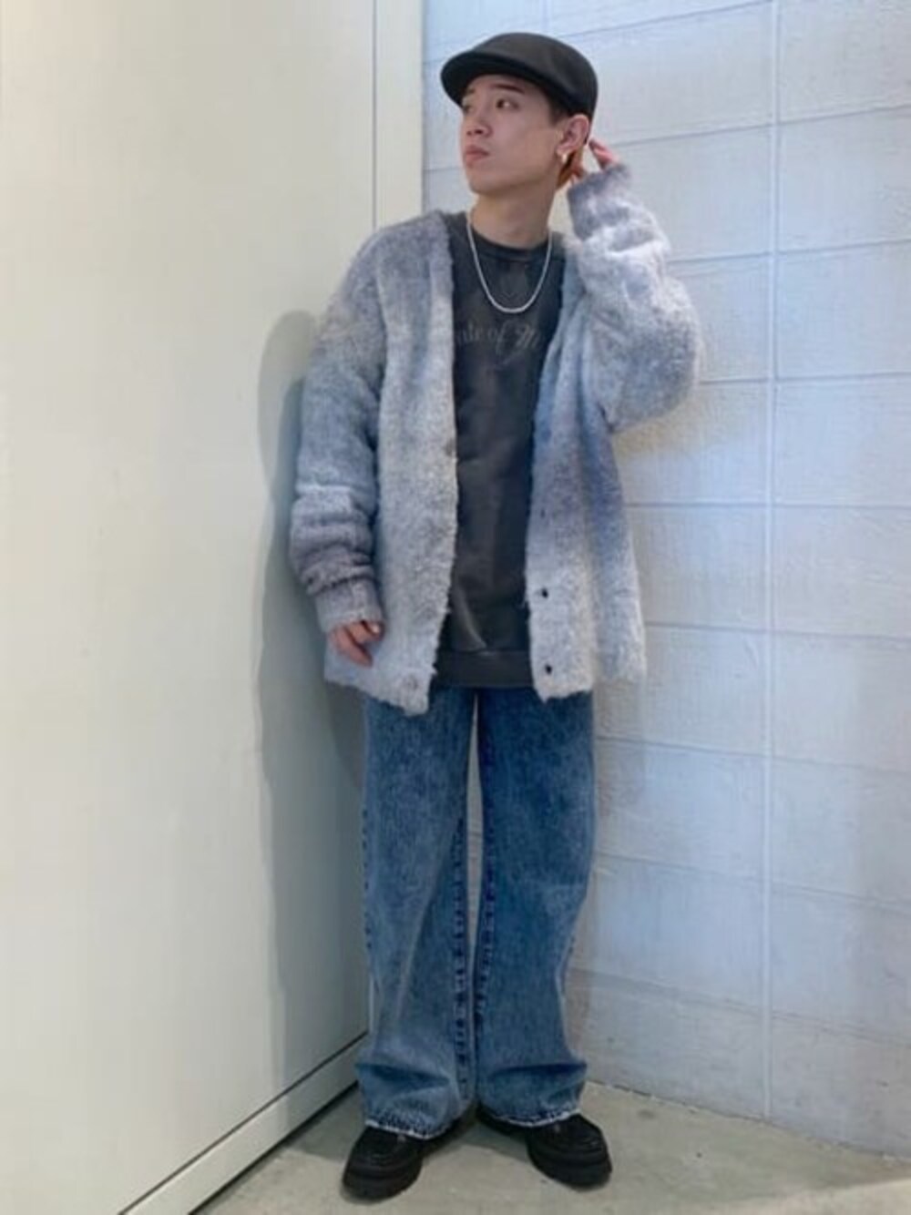 グラデーションが可愛すぎる、、、! 冬にピッタリな色合いで、サイズ感も中にスウェット着ても大丈夫なくらいになってます!! デニムも形が綺麗すぎて、スタイルアップ!!◎