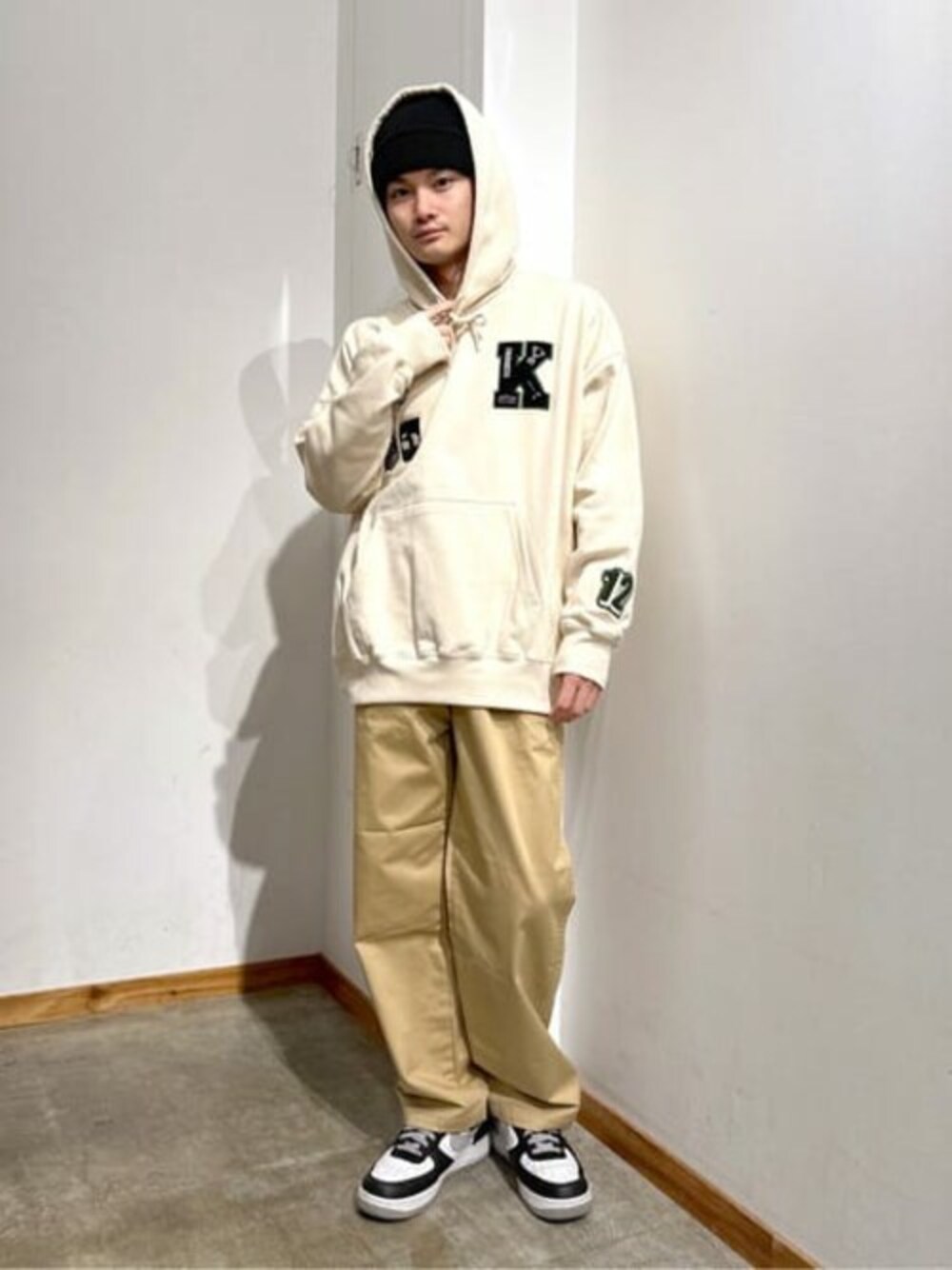 WEGO(WEGO STAFF)のパーカー「WEGO/ヘビーウエイト サガラワッペンプルパーカー」を使ったコーディネート