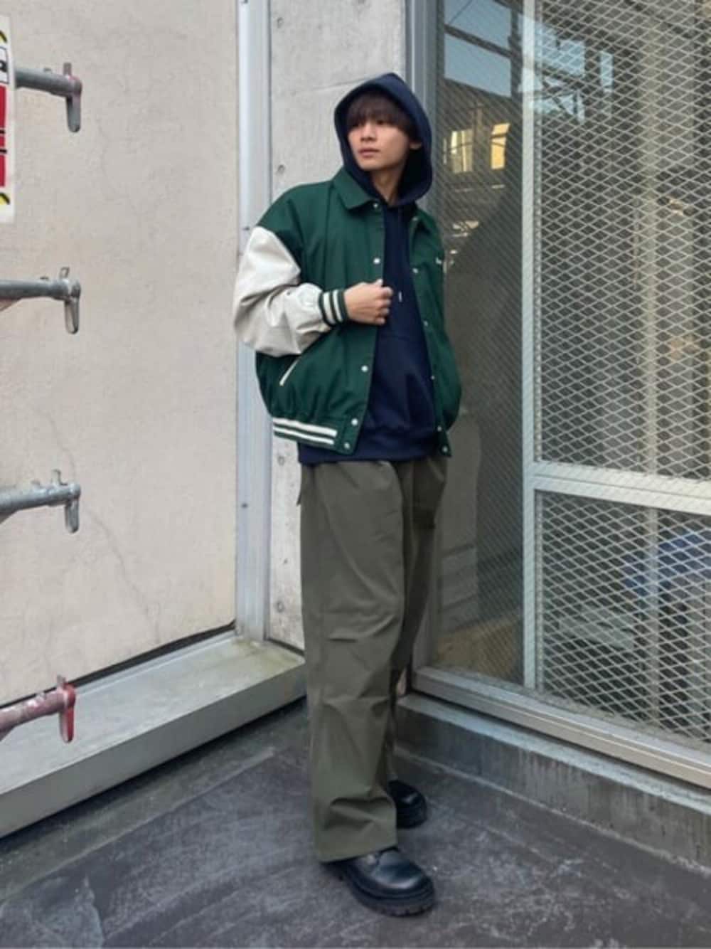 全体的に暗めなカラー使ったストリートコーデです!! 着用しているボトムスは、とても軽くて丈夫で動きやすいのが特徴です!! また、羽織っているスタジャンもヴィンテージ感溢れる刺繍でかっこいいデザインが多いです!! ストリートコーデをしてみたい方などは、ぜひ真似してみてください!!