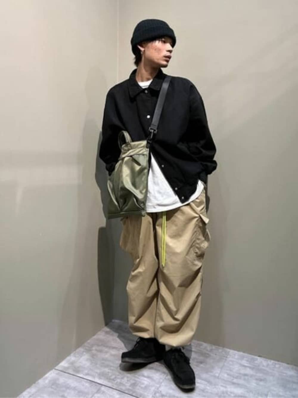 新作のスタジャンを使ったカジュアルストリートコーデになります😎 身幅や腕周りなどゆったりと着れるアイテムなのでインナーがビッグシルエットでストレスフリーで着脱できます🙆♂️ ボトムスはリアルバイのリップストップカーゴパンツ!ベージュって本当に使いやすい🤣 またウエストや裾にドローコードが付いてるので、縛って楽ちんに着れちゃいます👌 また、ダボっとしたシルエットのパンツなので、ゆったりとしたトップスとの相性抜群です🕺🕺🕺