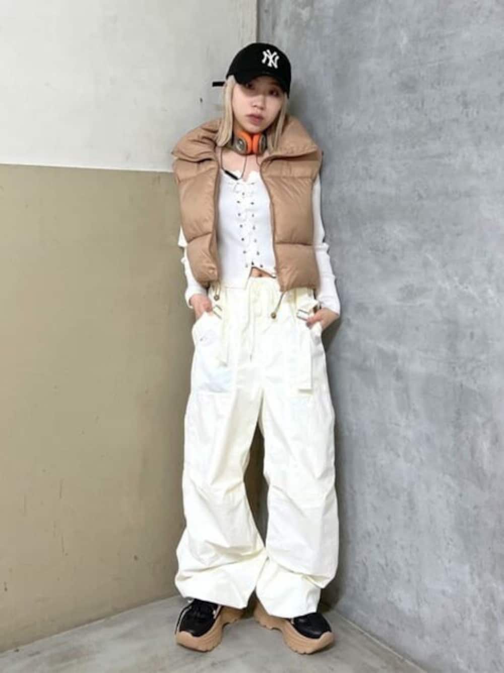 ・ベストはボリュームのあるダウンライクベスト!ショート丈なので低身長さんもバランスよく着れます💖 ハイネックで首元まであったかい🐰 丈はヘソの下ぐらいでお尻は見えるぐらいの丈です! ・インナーのロンTはピタッとしたサイズ感が女性らしくて可愛いで!レースアップ部分があるのでインナー必須です!