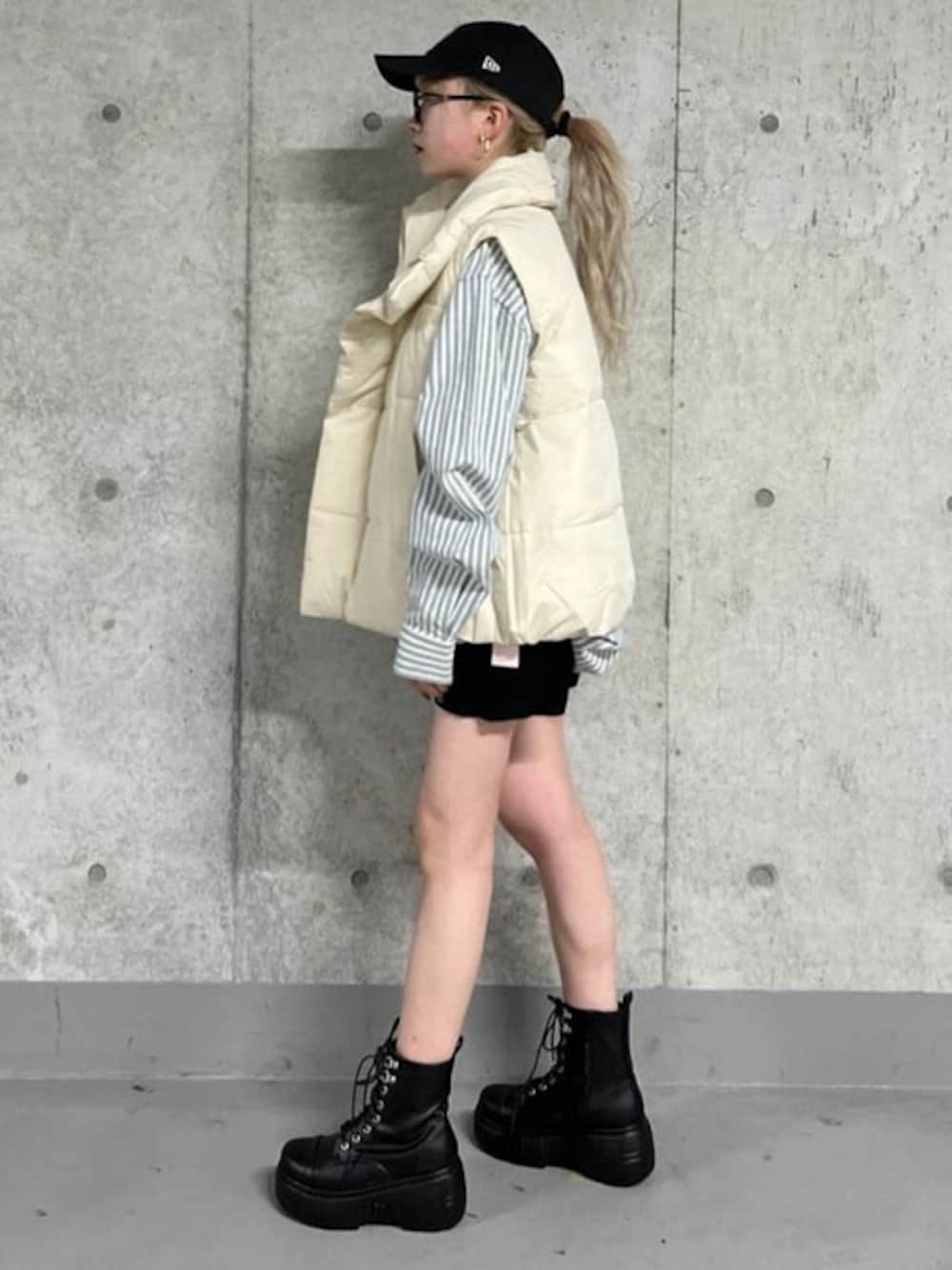 春夏と言えばストライプシャツですよね♪♪ 夏っぽくなりすぎないように、ボリューミーなダウンベストとニットパンツを合わせて春っぽコーデに!! パンツはニットですが、ゴワゴワ感がなくハイウエストなのでスッキリとしたシルエットで履けます^ ^