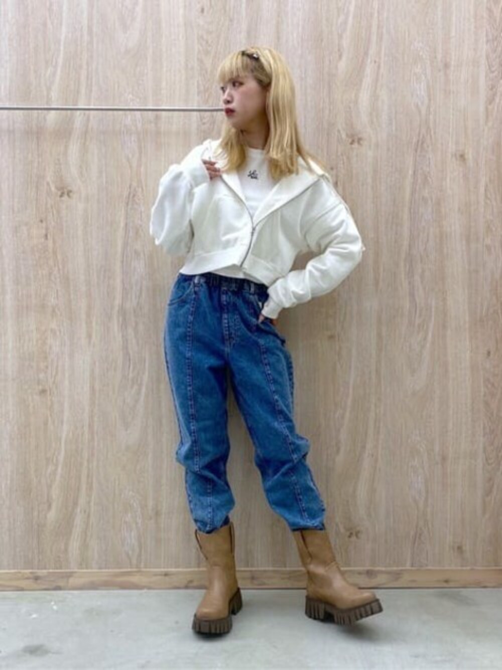 センターシムイージーパンツ、 足首につれて細くなっているので骨格ウェーブの方は ブーツインするとボリュームが出てバランスが取りやすいです! ウエストもゴムで履きやすく、デニムの中でも生地が柔らかいタイプなので動きやすさも◎