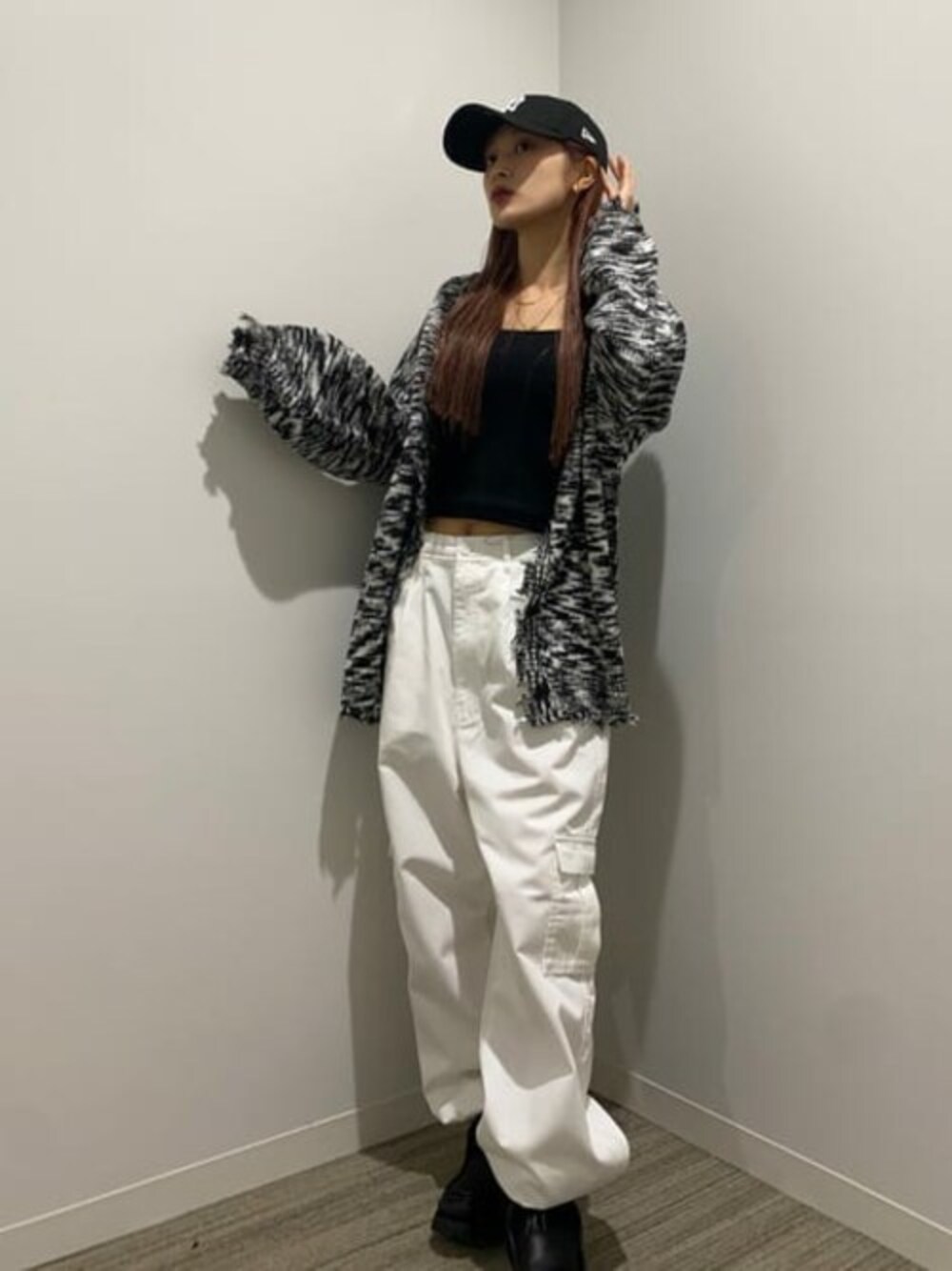 モノトーンでまとめた大人ストリートコーデ!(^ ^) ゆったりしたシルエットのカーディガンにカーゴパンツを合わせてゆるっとかっこよく着れちゃいます!!