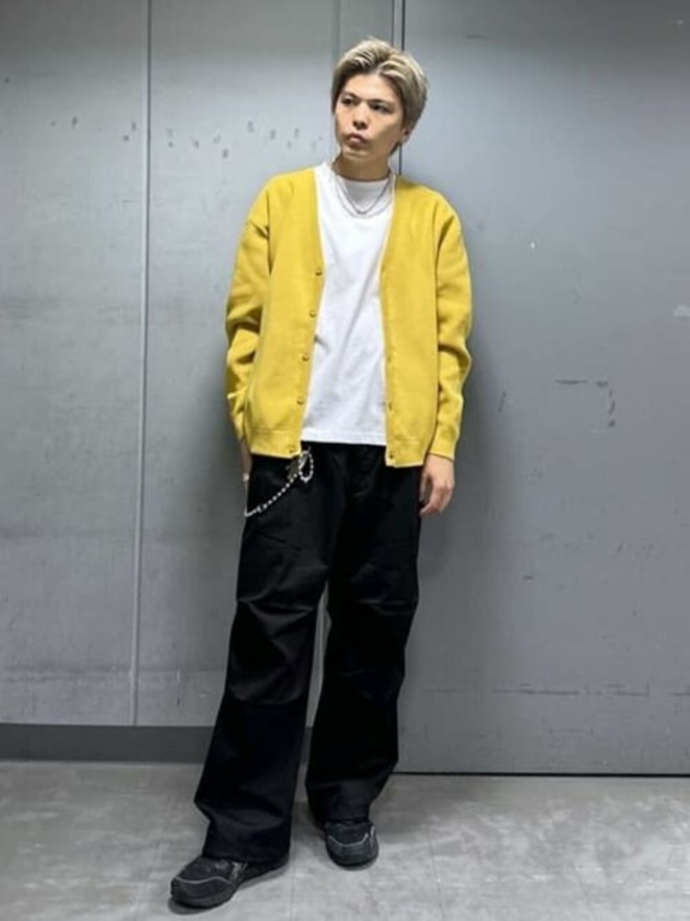 スポンジカーディガンを使ったコーディネートです!! 春らしいイエローはインナーやボトムスをモノトーンでまとめて頂ければ初心者さんでも 取り入れやすいと思います😌