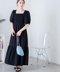 【シャーリングロングワンピース】 着るだけで大人に印象に! フクレジャガードが小洒落てて可愛い♡ パフスリーブなので二の腕カバーもしてくれます! 【ラメシアートップス】 夏に着たいシアートップス! Tシャツなどのカットアイテムのインナーとして着るのがオススメ☆