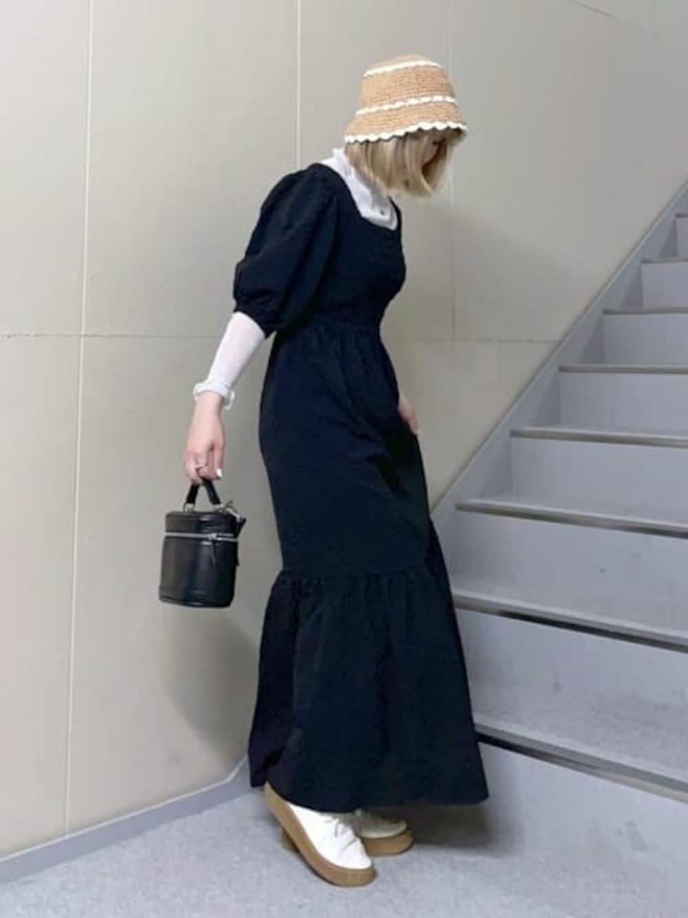 WEGO(WEGO STAFF)のワンピース「WEGO/【一部店限定】シャーリングロングワンピース」を使ったコーディネート