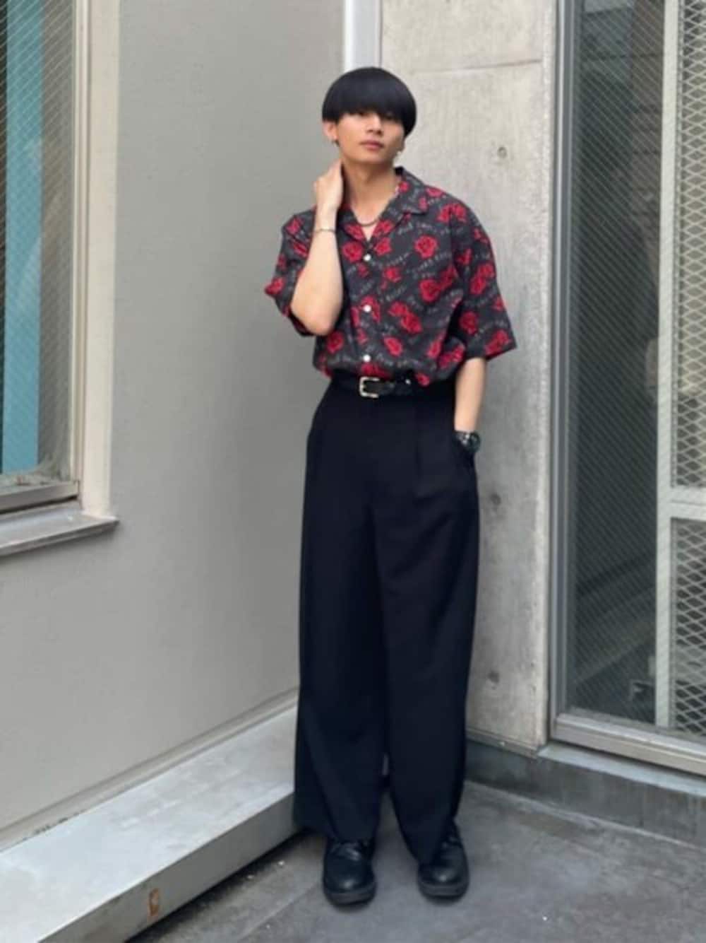 新作のアロハシャツを使ったキレイめコーデ!! 赤黒のみ取り入れた、少し大人な雰囲気の出るコーディネートです! トップスのシャツはオーバーサイズで、生地は柔らかく通気性も高いです! タックインやワイドなボトムスと合わせてもカッコよく着こなせます! カラーバリエーションも豊富で、夏らしい明るめな色からクールな暗めな色まで多数あります!