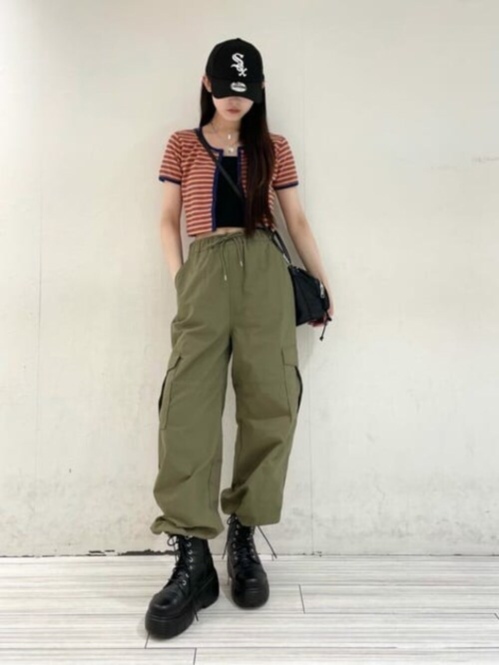 大人ストリート🎱 ショート丈トップスにカーゴパンツでヘルシーに トップスは前ボタンになっていて、全開けしても全閉めしても1番上だけ止めてもかわいい 優れモノ♥ 夏のお出かけに最適です!