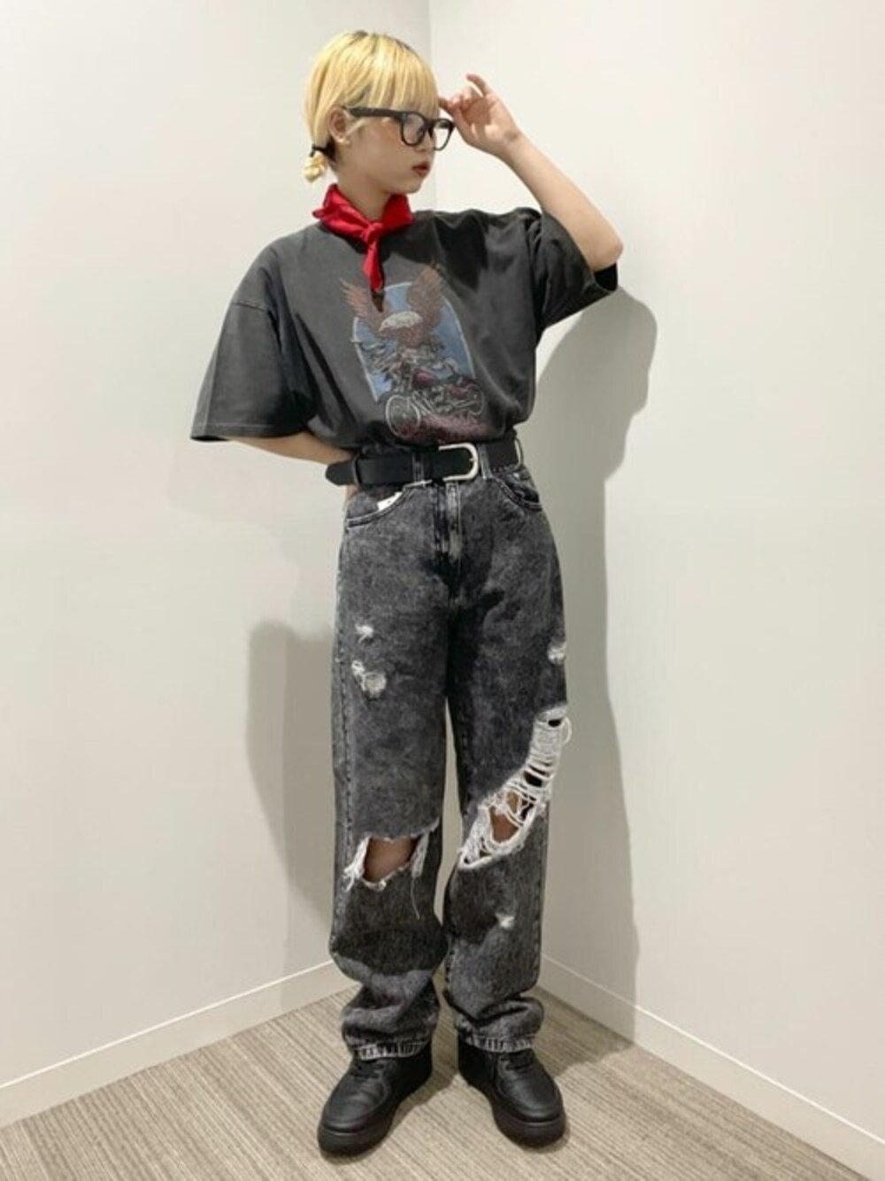 メガネを使った古着コーデ👓🚨👖🌎 ☆トップス☆(Fサイズ) 古着テイストを楽しめるピグメントTシャツ🍓 程よいダメージ感があるTシャツです!! BIGTシャツになっているので、少しゆったりとした着丈になります🌟inをするとスッキリとした印象になります💡 ☆ボトムス☆(Sサイズ着用) ローライズ・ハイウエストどちらも楽しめる万能デニムパンツです!!カラーバリエーションが豊富なので、持っているトップスと色味を合わせたり、欲しい色味が見つかると思います💡☝🏻 私が着用しているカラーはケミカル素材なので、より古着感がアップして見えると思います🤳🏻🤍