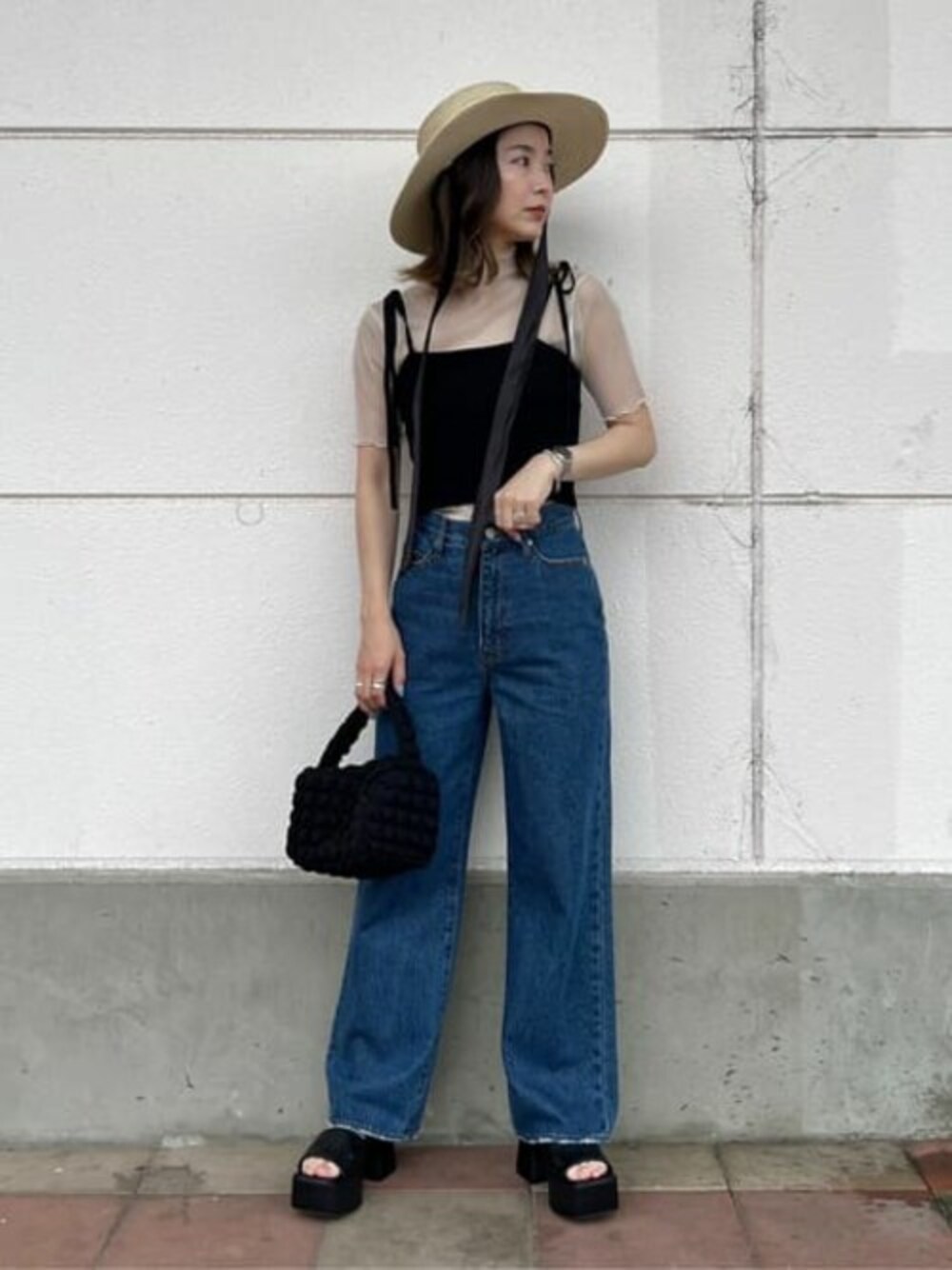 キラキラでラメラメ可愛いシアーT♡ 大人カジュアルもバッチリ決まります シンプルなストレートデニムパンツは 通年通して使えるので本当にオススメ◎ 雑材のハットで季節感プラス‼︎