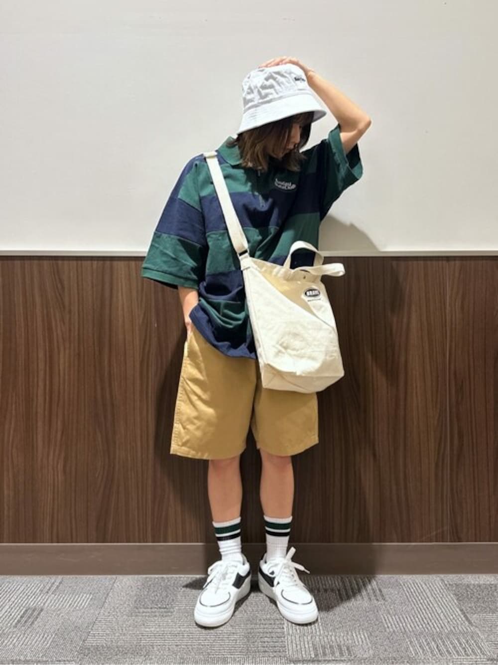 メンズアイテムで少年っぽく(^.^)❤︎❤︎ ボトムスのハーフパンツは男女問わず大人気!! これからの季節に抜群アイテムです♪ 長めのソックスと合わせるのが個人的に好きです❤︎