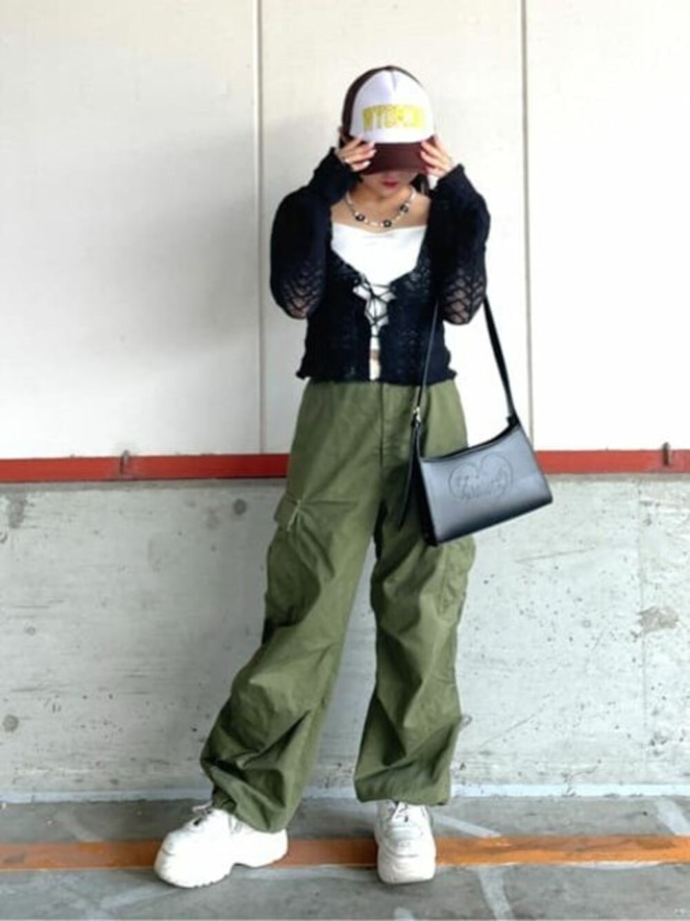 個人的におすすめするイチオシ商品のワイドカーゴパンツと、 ギャル感が半端じゃないカーディガンを合わせたコーデになってます!! カーゴパンツが大きめなので、トップスはピチッとさせてスタイルよく見せました🔊🤍 女の子で大きめカーゴパンツをお探しの方は絶対WEGOのワイドカーゴパンツSサイズがおすすめです❕💕