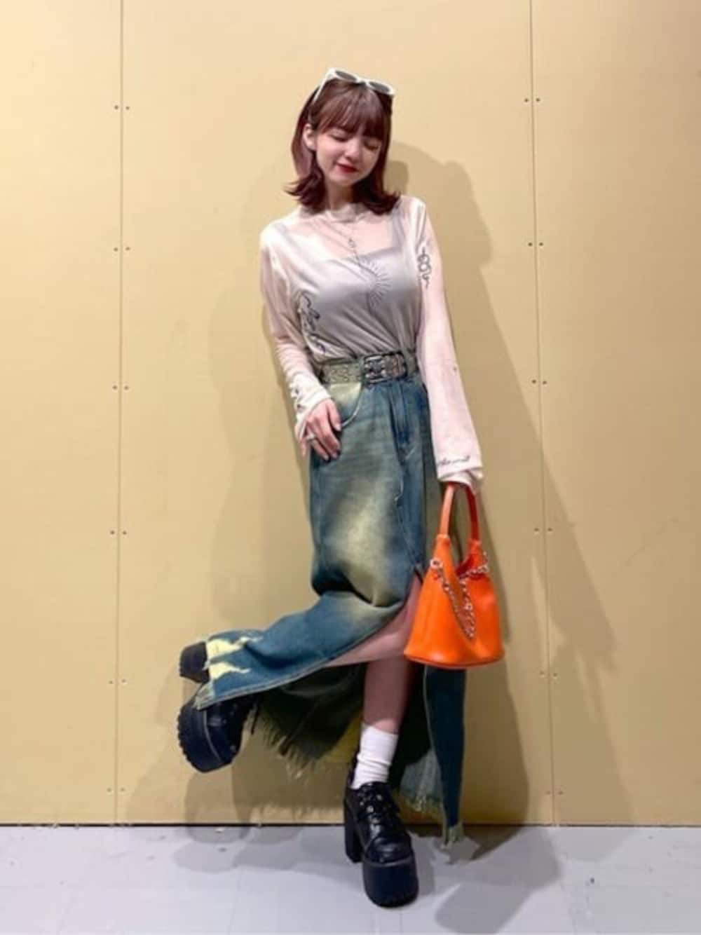 グランジ風コーデ シアーロンTとスカートはFサイズで スカートは低身長でも厚底で履けるくらいの丈感です。 シアーロンTは男女兼用で着ていただけます。