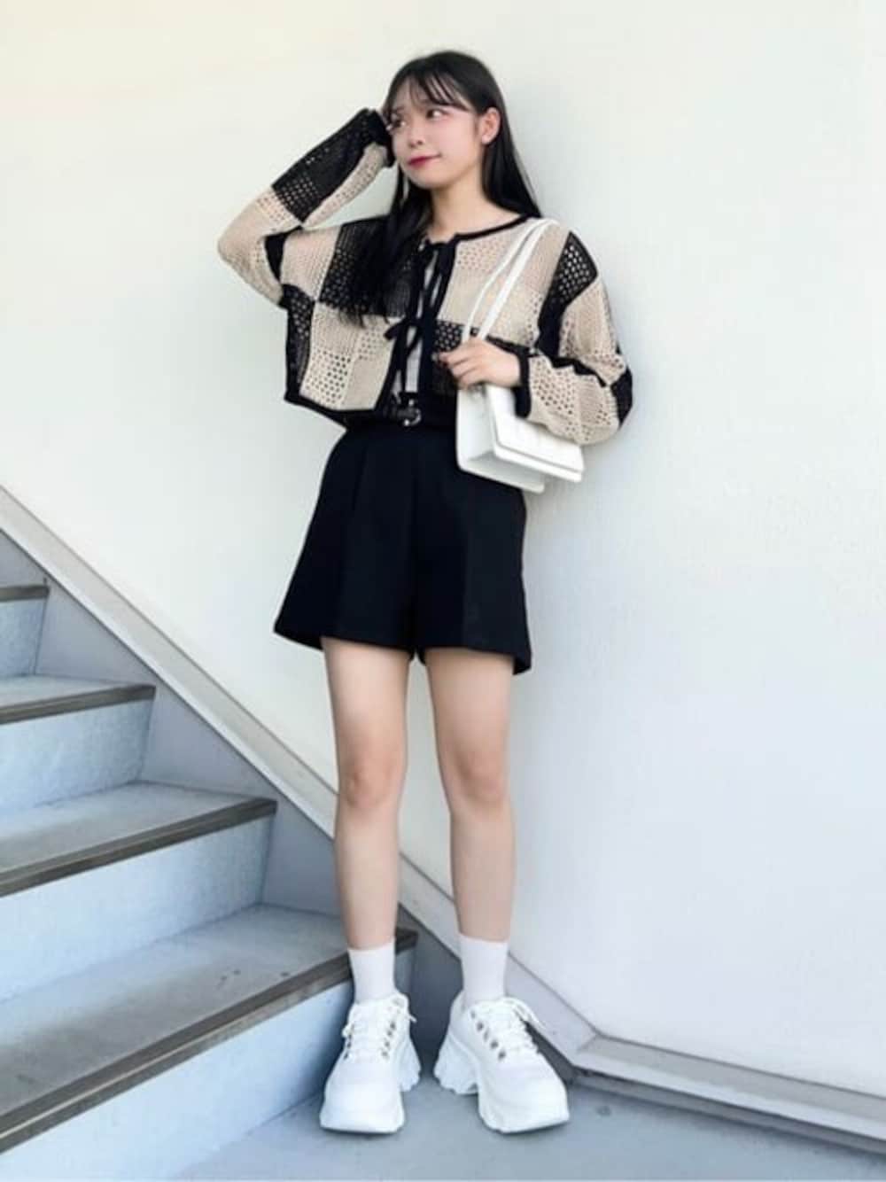 韓国っぽコーデ🎱👟 ニットカーデはTシャツと合わせて秋にも使えちゃう!! パッチーワークのデザインがお洒落で可愛い^ー^♡