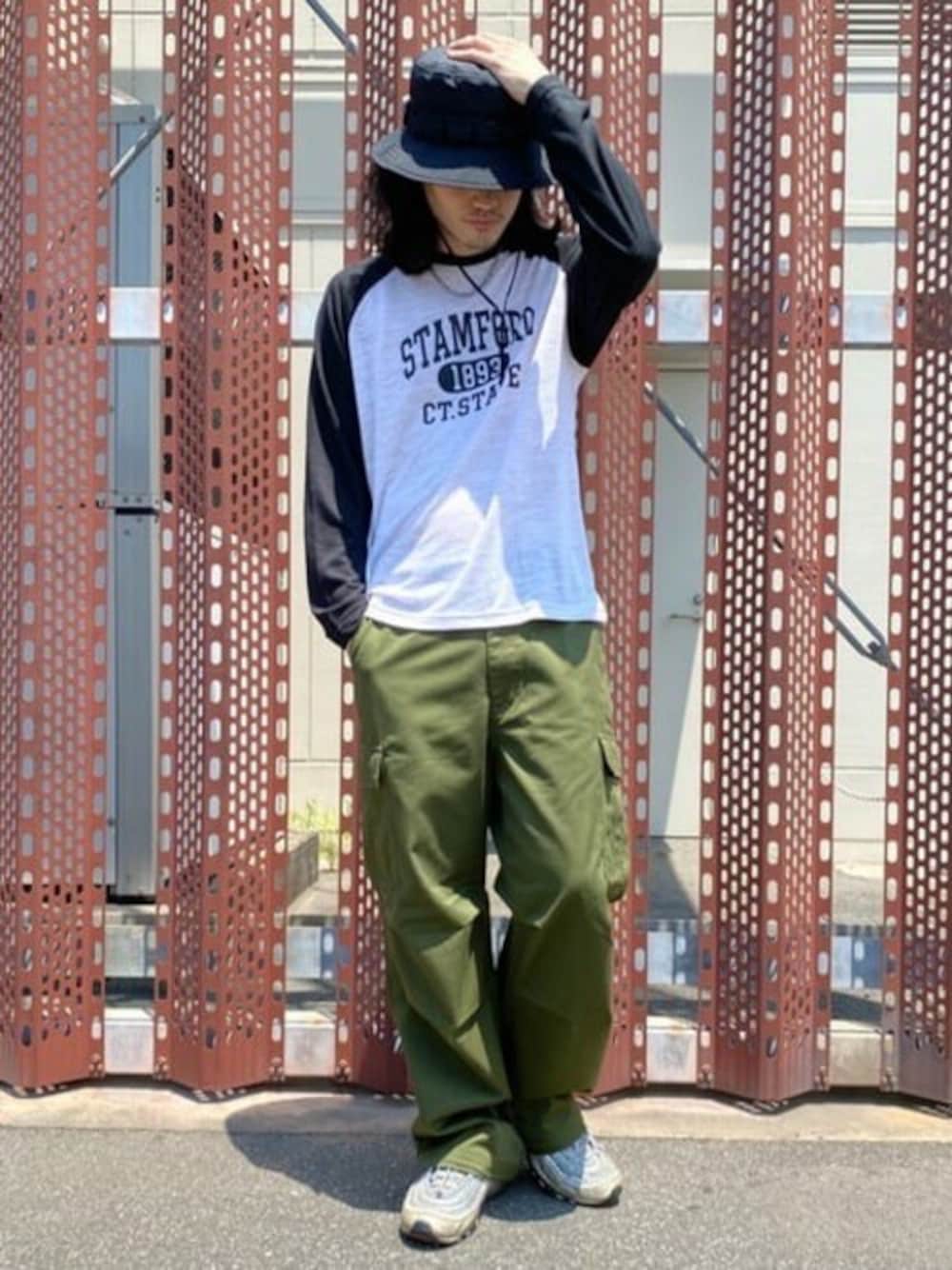 新作のヴィンテージロゴラグランロンTコーデです! カーゴパンツと合わせて古着風に着用してます! カラーもブラックとホワイトで色々スタイリングに合わせやすいです! 長袖なのでこれからの季節に長く着ていけます!