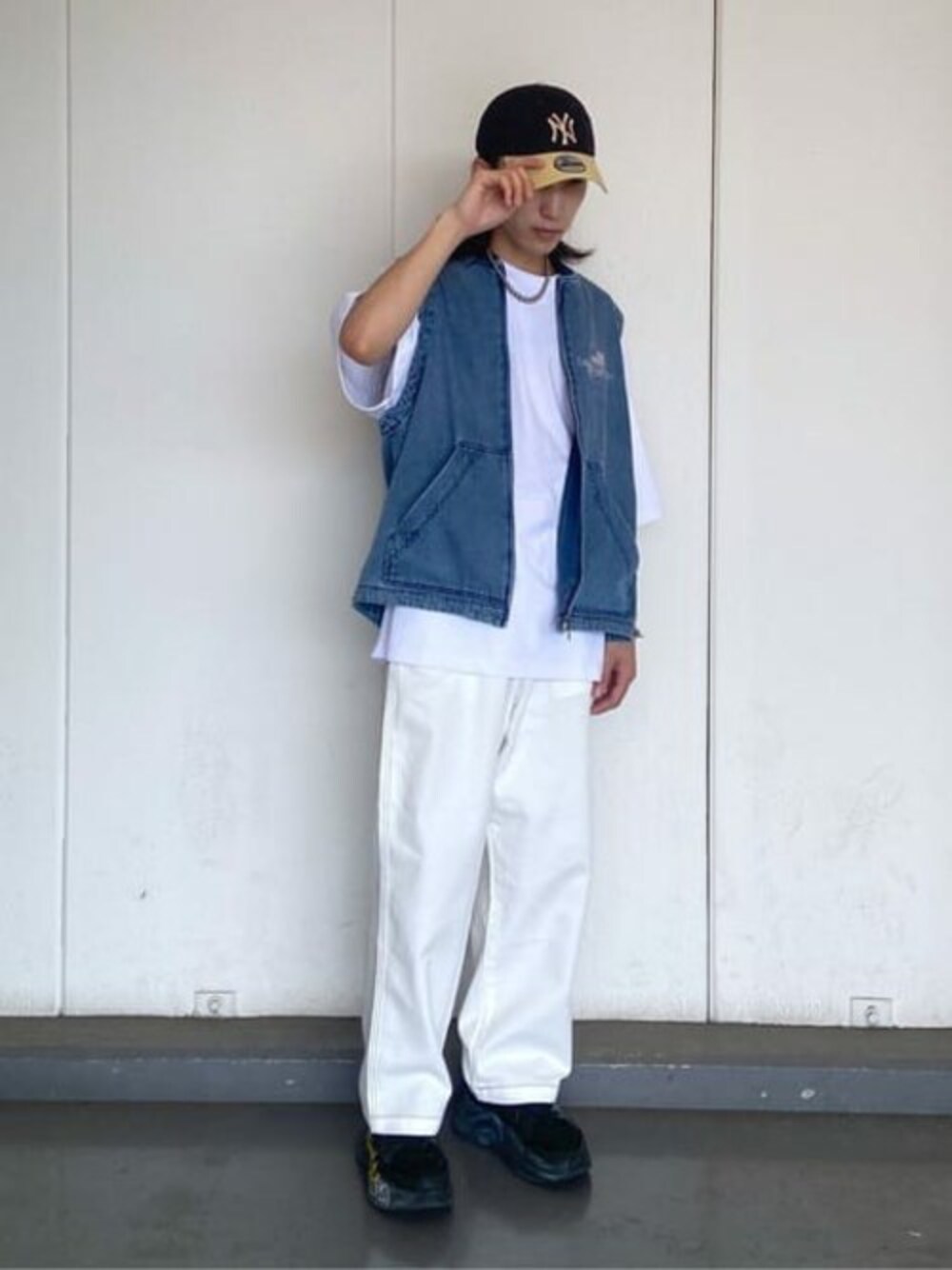 ワーカーズベストは胸元にシンプルな刺繍あるので、色々なトップスの上から羽織って簡単にお洒落ができます! アメカジやストリートで合わせるのがおすすめです! ワーカーズパンツはゆったりしたサイズ感で、ベストとセットアップで使えることができます! シャツと合わせて大人カジュアルにするのもおすすめです!