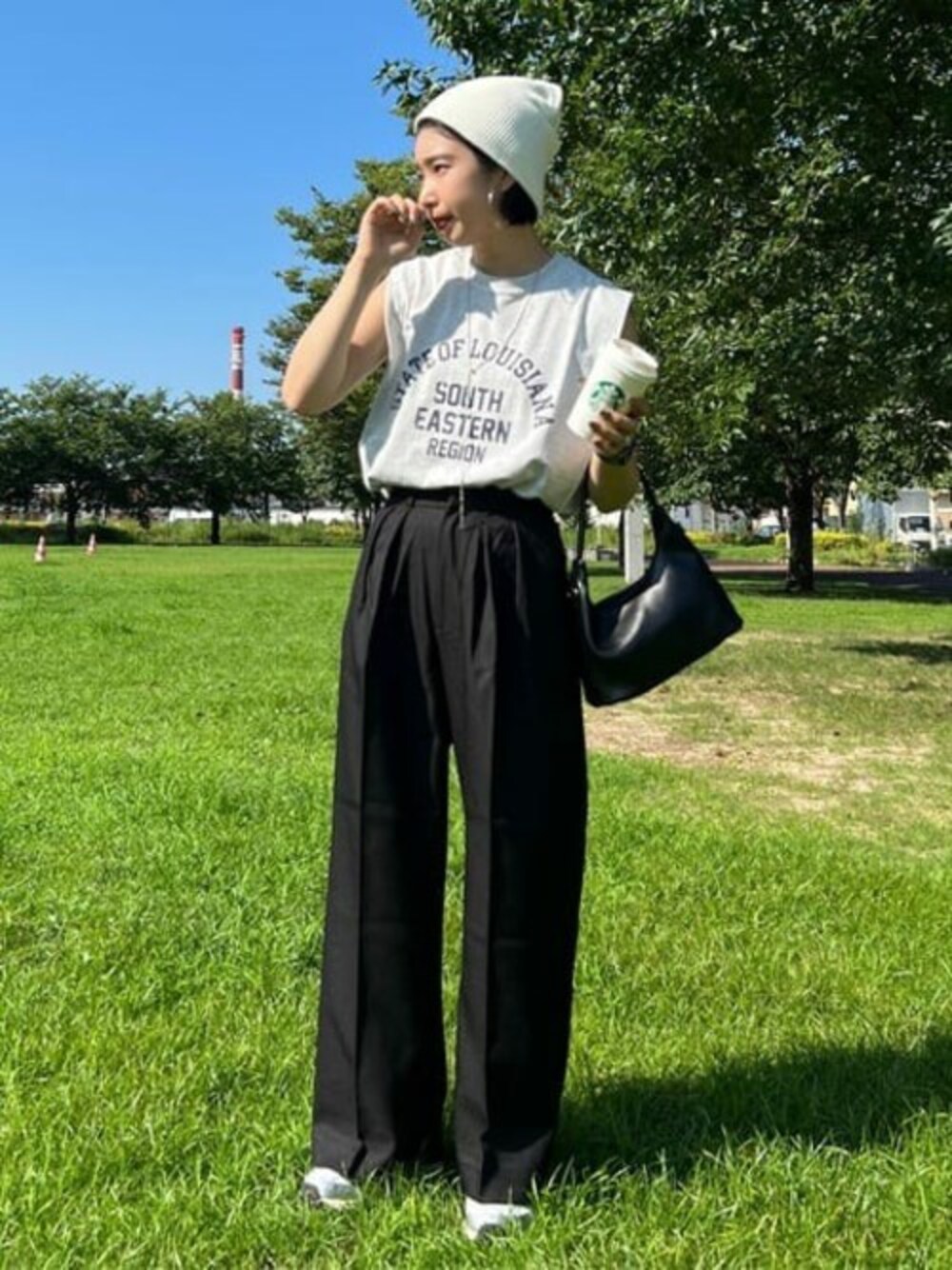 カジュアルに決めたい日の大人コーデ ラフなファッションなのでアウトドアでも使いやすい! ヴィンテージ感が可愛いノースリーブT! 古着ライクに着れるお洒落Tシャツです! ロゴもシンプルでどんなコーデにも合わせやすいので 流行り廃りなく長く使えて◎! オシャレなワイドスラックスパンツ! ゆるっとしたシルエットが可愛くカジュアルにも キレイめにも着こなせます! 股上が深めになっているので脚長効果もあり 履くだけでオシャレに決まります!