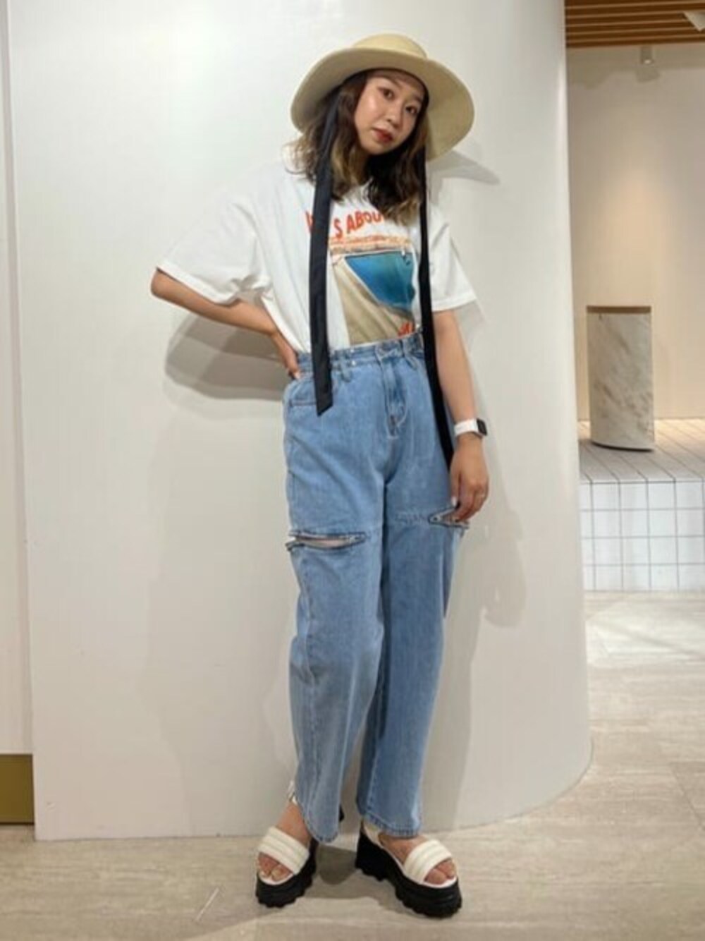 シンプルなコーデには、小物を足すと◎ ウエスト細見えのデザインデニムで、コーデの主役に!!