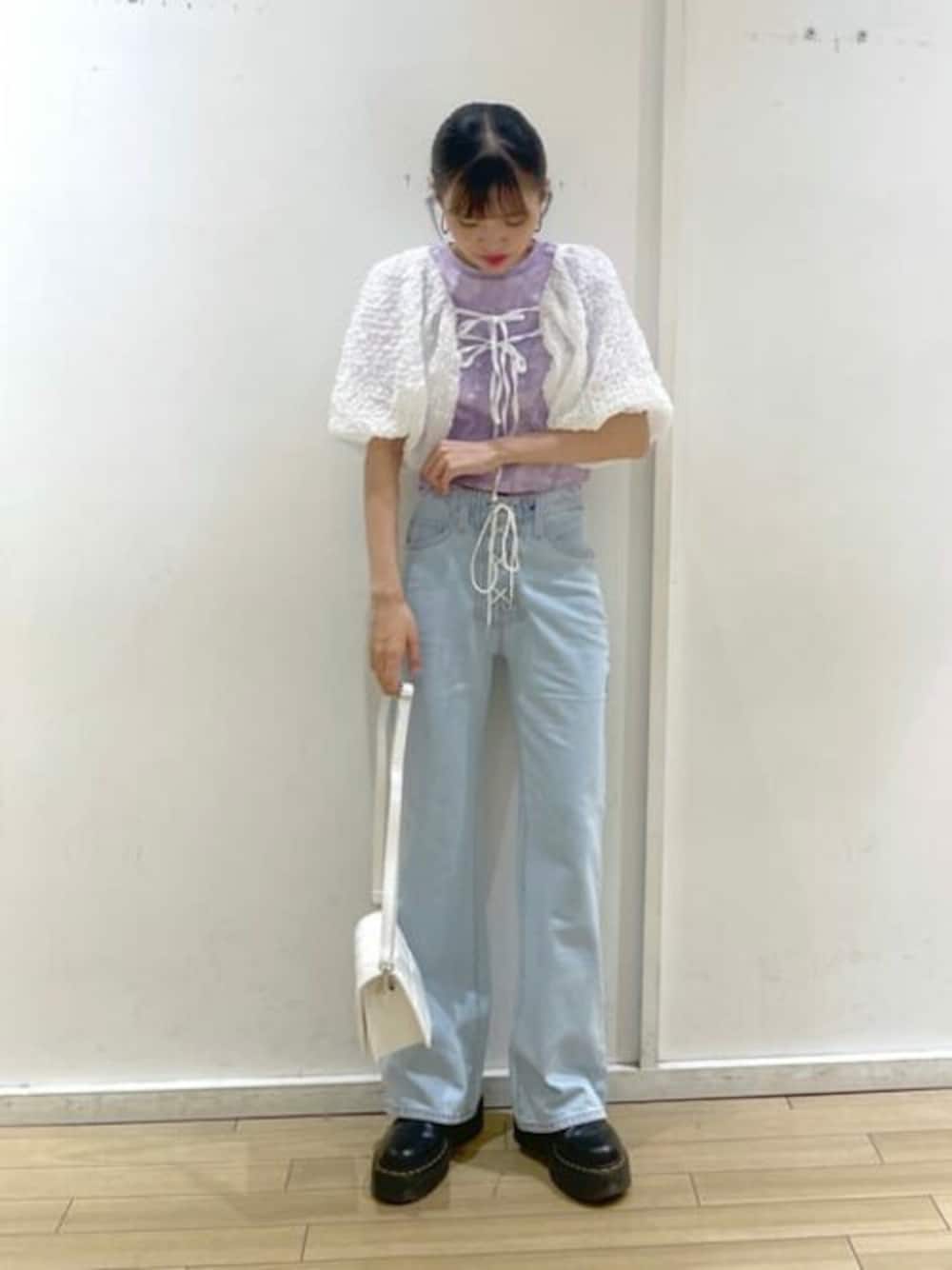 大人綺麗めコーデにしました! フレアパンツ×ショート丈のトップスでスタイルupです! フレアパンツはシルエットがめっちゃきれいでオススメすぎるアイテム! どの角度から見ても美脚効果抜群なんです◎ 165cmでMサイズを着用しています! ウエストと丈感両方ともいい感じでした👌🏼 ボレロは気になる二の腕を自然に隠してくれる万能アイテムです! 腕の細い部分しか出ないのでスタイル良く見えます💞 いつものコーデにボレロをプラスするだけでオシャレ度up!!