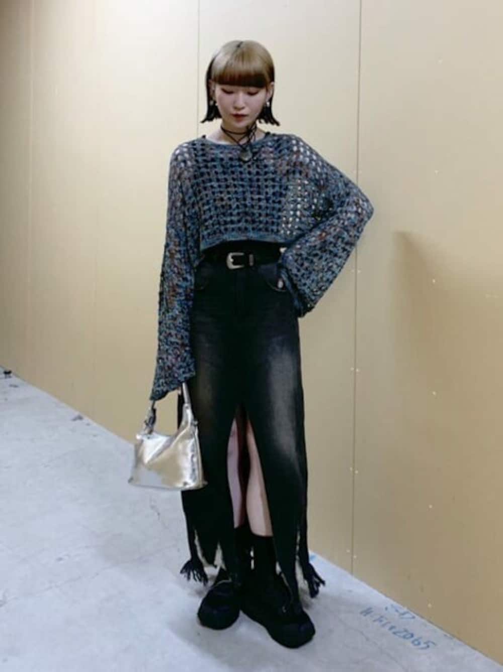 WEGO(WEGO STAFF)のデニムスカート「WEGO/ヴィンテージウォッシュスリットロングスカート」を使ったコーディネート