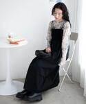 【キャミワンピース】 胸元はリブになっていてリブとナイロンのドッキングデザインがオシャレなポイントです! ロングシーズンで着用できます。 軽い素材なので着心地も◎