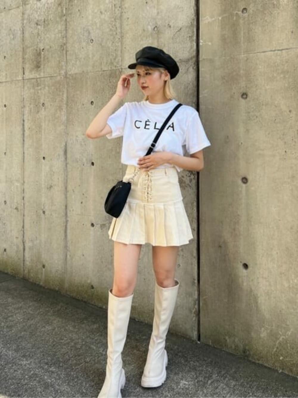 秋のWhite codeしてみました!!◎ WCのレースアップスカートは足長効果抜群です! 小物は黒で統一する事でまとまりがでます!