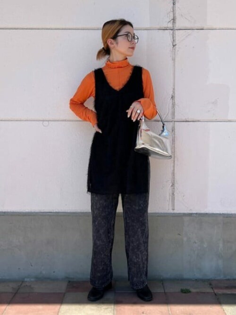 細かいフリンジが高見えするチュニック‼︎ サイドスリットが大人な雰囲気に◎ 骨格ウェーブさんにぜひオススメしたい このデニムパンツはシルエットが ウエストぴったりヒップゆったりです♡