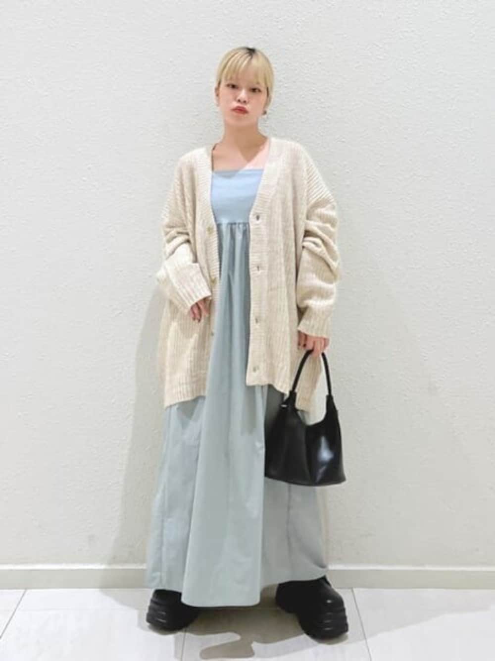大人秋コーデ ・ルーズフィットカーディガン(Mサイズ)と リブドッキングキャミワンピース(Fサイズ)でシンプル大人コーデに!