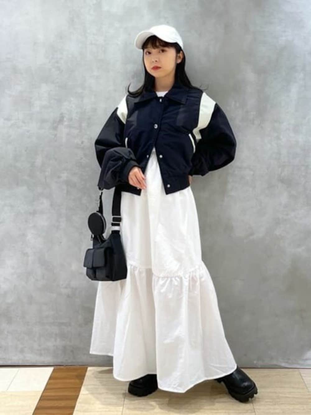 • outer 147cmの私が着るとウエスト下あたりの丈感です! ナイロン素材で軽く着やすいです! 袖はボリュームあるシルエットで、中に厚手のインナーを着てもストレスフリーで着用いただけます! デニムスカートと合わせるとカジュアルガーリーなコーデにもハマります◉ ・skirt 147cmの私が着るとくるぶしあたりの丈感です! ふわっと広がるシルエットで女の子らしく、ストリートなアイテムと合わせても◉ ペチコート付きなので透けにくく、安心して着用いただけます!