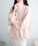 フリーサイズのハーフジップSWTです! 145〜150までは少しワンピ風にも着こなせます! あまり厚みの生地ではないのでこれからの時期中に着込んだりもしやすいシルエットです!