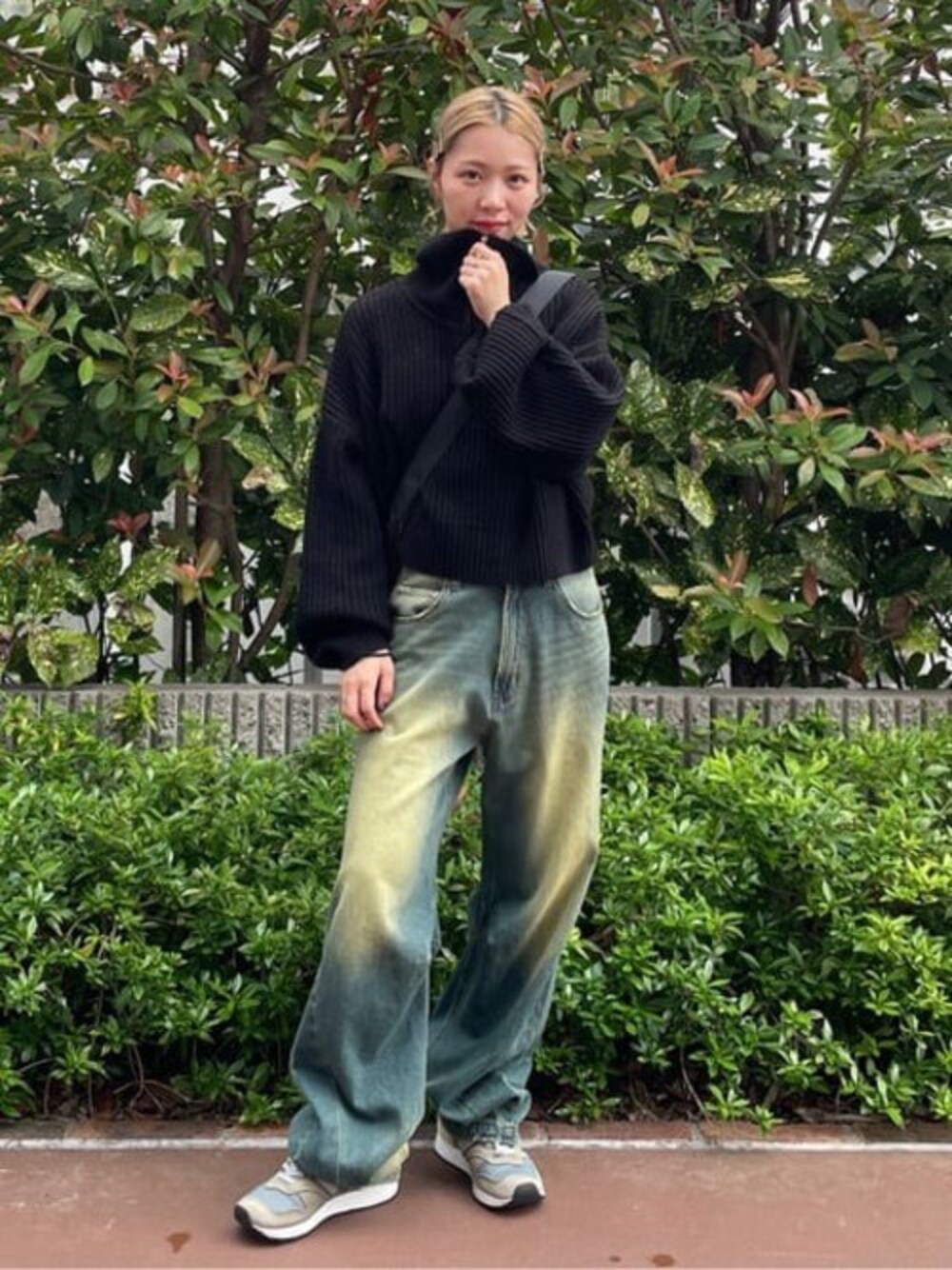 ハイネックインナーにハーフジップが◎ ショート丈なので女性ならではの、アイテムです^_^ スタイルアップ効果も抜群! ふるぎっぽい色のデニムがかわいいです^_^