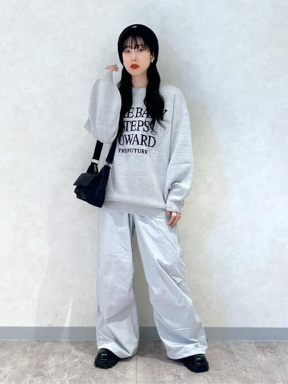 カジュアルに決めたい日の大人コーデ ラフなファッションなのでアウトドアでも使いやすい! 秋冬らしい着回しやすいカラー! トレンド感のあるビッグサイズのニットで使いやすい◎ フロントのロゴデザインがシンプルでどんなコーデにも合わせやすく流行り廃りないデザインなので長く使える! 今年トレンドのパラシュートパンツ! ダボッとしたシルエットが体型を隠してくれつつ オシャレに決まるアイテム! 裾部分がドロスト使用になっている為絞っても◎