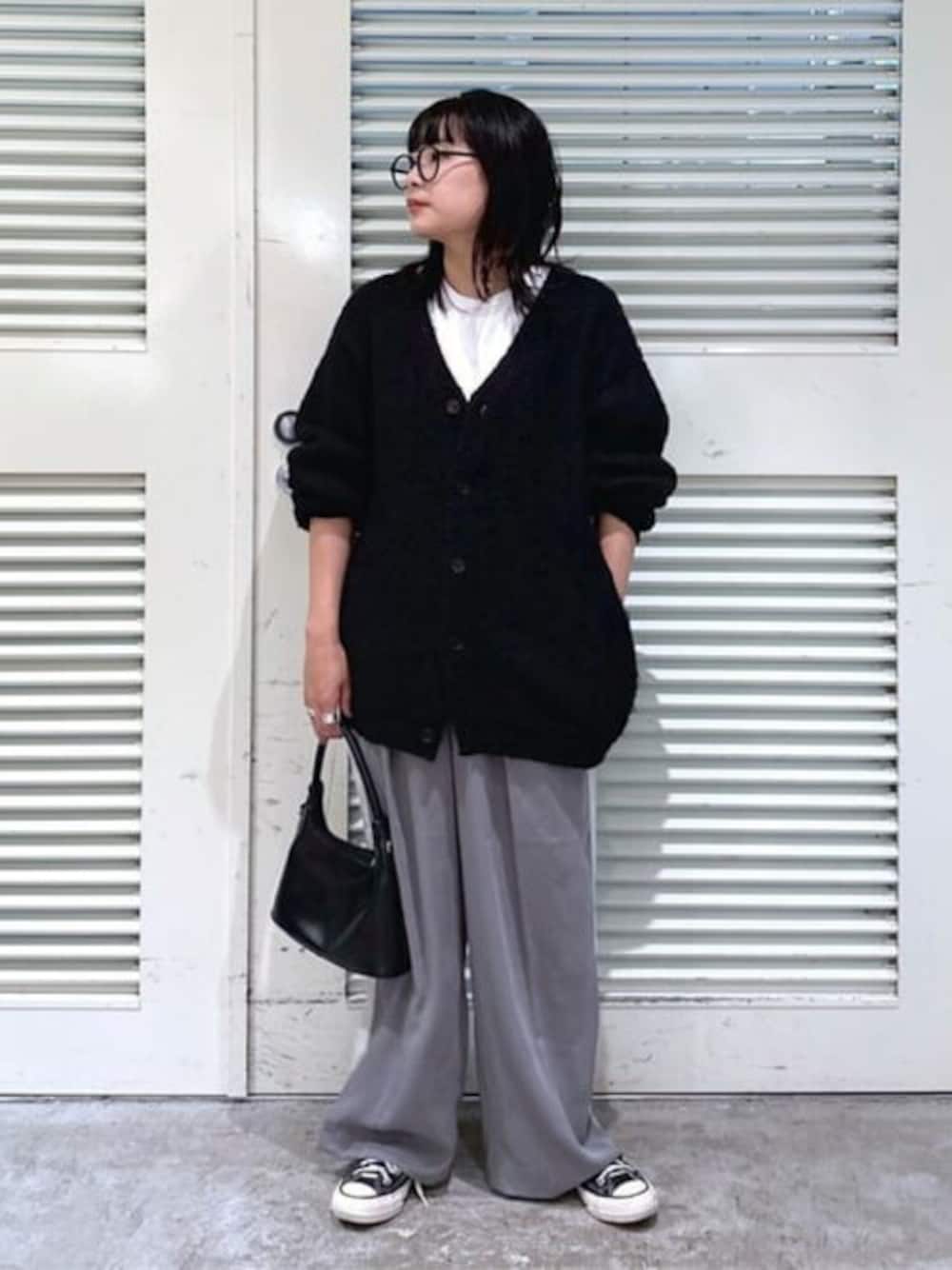 秋冬大活躍のモヘアライクカーディガンを使ったシンプルコーデ✔️ ブラックのカーディガンはきれいめな印象が強いのでサイドラインタイプのスラックスと合わせてカジュアルっぽさをプラスしてみました✌️ ◼️カーディガン Lサイズ もこもこな手触りがつい癖になる毎年人気のアイテム🙆♀️ 156cmの私が着用してお尻がすっぽり隠れるサイズ感です! 全体的にルーズなシルエットなので、女性の方はビッグシルエットにこだわりがなければMサイズがジャストになります✔️ ◼️スラックス Fサイズ サイドラインがポイントで、普通のベーシックなスラックスの他にもう1本欲しい時にオススメのアイテムです✌️ ワイドストレートなシルエットとトロミ素材で、履いた時に抜け感の出る1本となっております! 156cmの私が履いて、少し丈が余ります!
