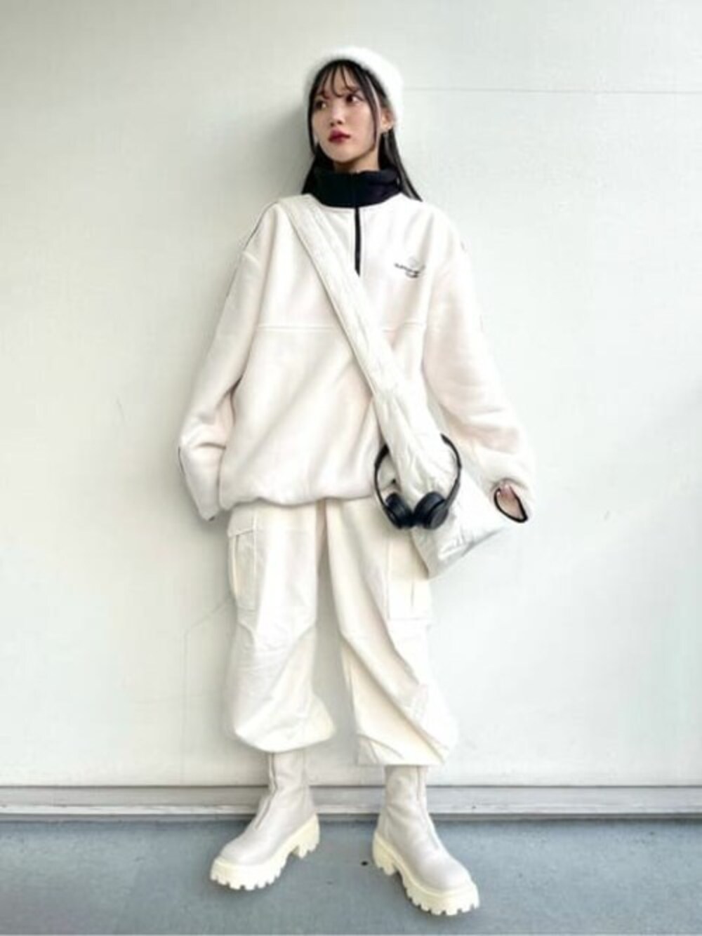 ALL WHITE🤍🤍 トップス→Lサイズ ボリュームはありつつ、裾周りにゴムがあるのでメリハリが演出できます✨ ボトム→Mサイズ ダボっと着たいのでMサイズを着用💞 1つ前の投稿ではピンクを着用してるので是非ご覧ください(ミ・。・ミ)♡
