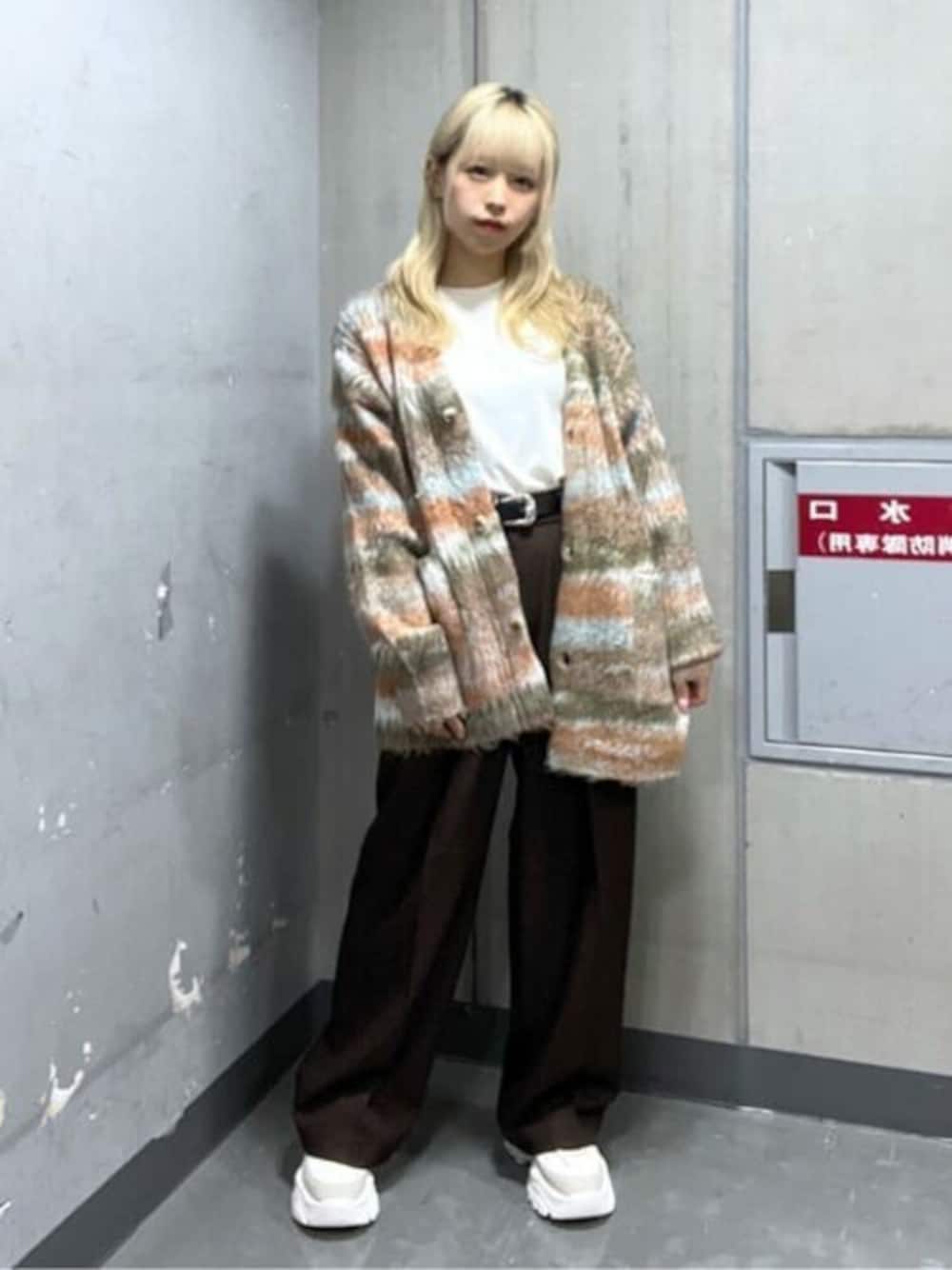 WEGO(WEGO STAFF)のカーディガン/ボレロ「WEGO/マルチボーダーブラッシュニットカーデ」を使ったコーディネート