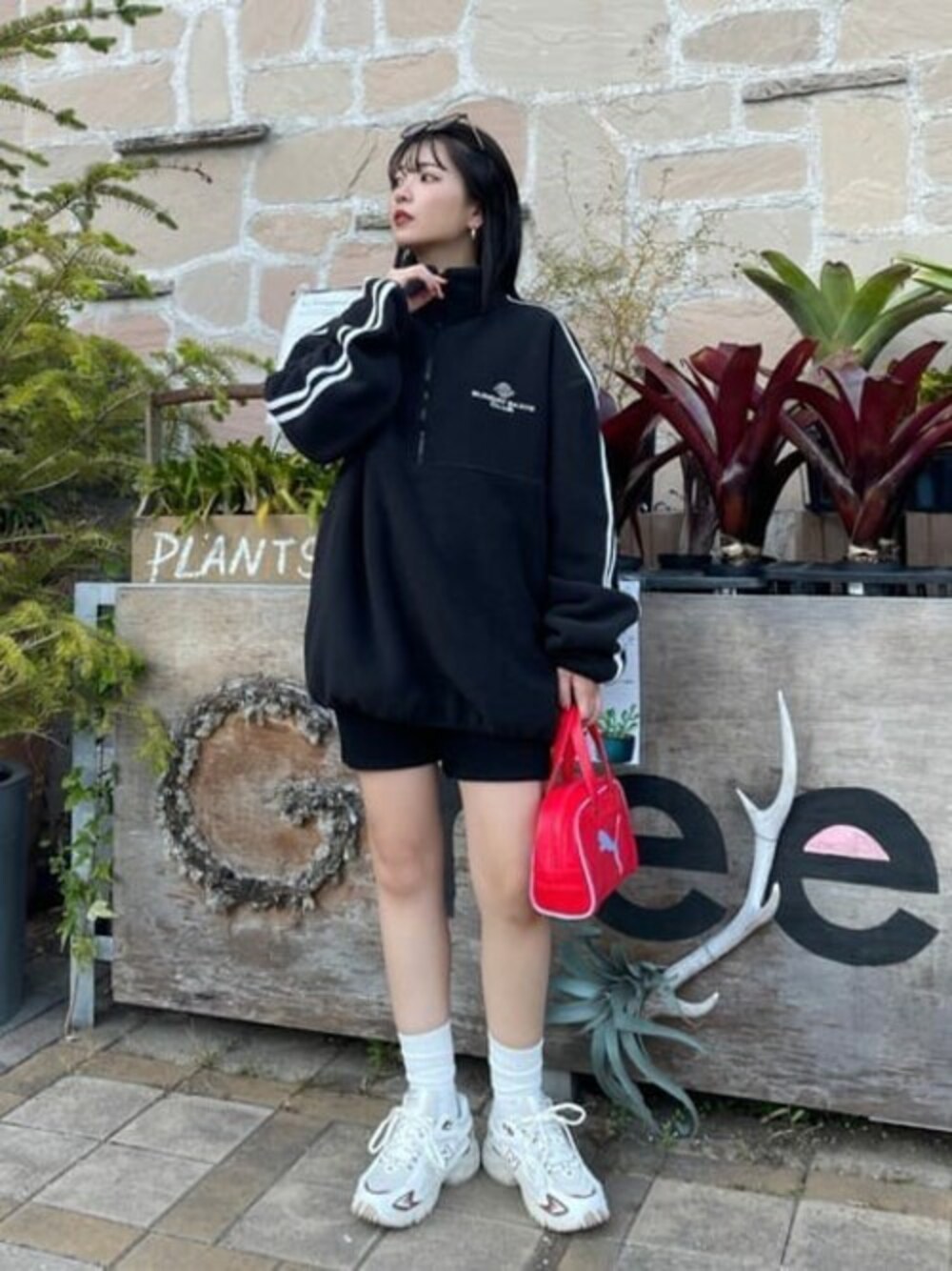 WEGO(WEGO STAFF)のスウェット「WEGO/フリースワンポイントハーフZIPプルオーバー」を使ったコーディネート