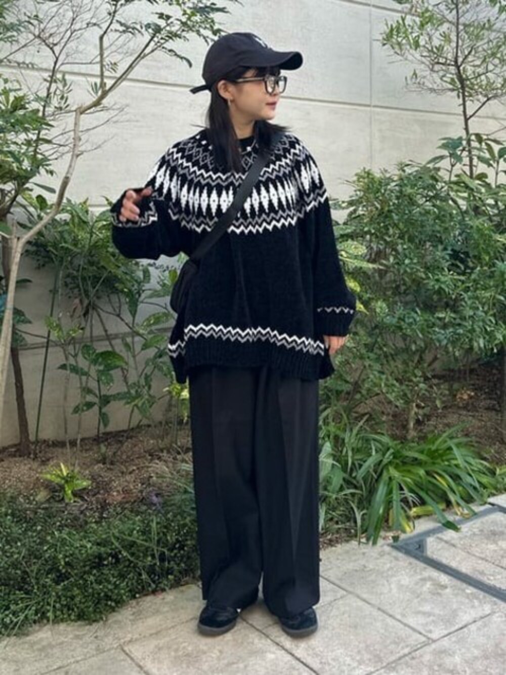 WEGO(WEGO STAFF)のニット/セーター「WEGO/ベロアモール総柄ラグランプルオーバー」を使ったコーディネート
