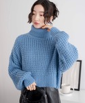 ・タートルネックワッフルショートプルオーバー F(フリー) シンプルなワンカラーの編み地に、ボリュームスリーブがポイントのニット! タートルネックなので首元まで温かいのがポイント◎ デニムやスラックスでカジュアルなスタイリングもおすすめです!