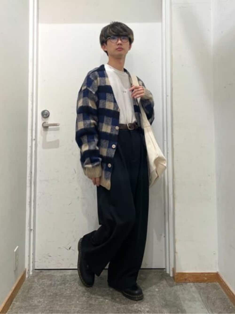 モヘアライク総柄カーディガンを使ったコーディネートです! 深めのブルーなので汎用性が高く着回ししやすいです!!