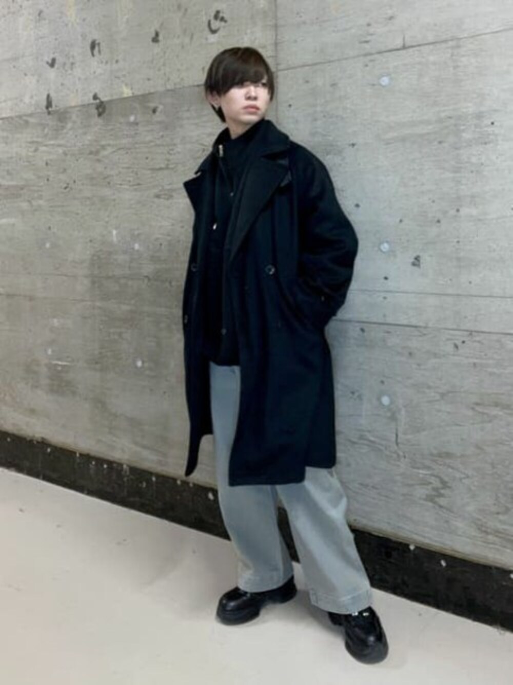 チェスターコートを使ったコーデ! このコート冬アウターイチオシなんですがなんと言っても完璧に近いディティールが推しポイント。 チンストラップに膝下ぐらいの丈感、ボタンの質も良し、アームにもパーツがついていて8000円なのでエグい、、クオリティです。 そんなコートには今季ハーフジップがおすすめ。 ハイネックアイテムは顔が小さく見える&このようなアウターの相性が抜群。 写真の通りめちゃかっこいいです! 黒のコートに黒のハーフジップが最強ですか今回はデニムを着用。真っ黒なカラスみたいにならなくていい感じですよ✨️