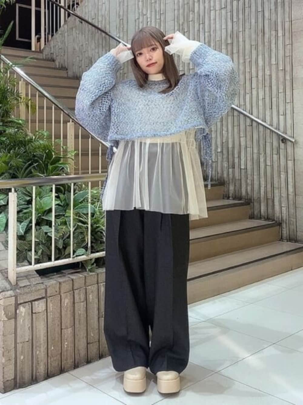 WEGO(WEGO STAFF)のニット/セーター「WEGO/メランジメッシュリボンプルオーバー」を使ったコーディネート