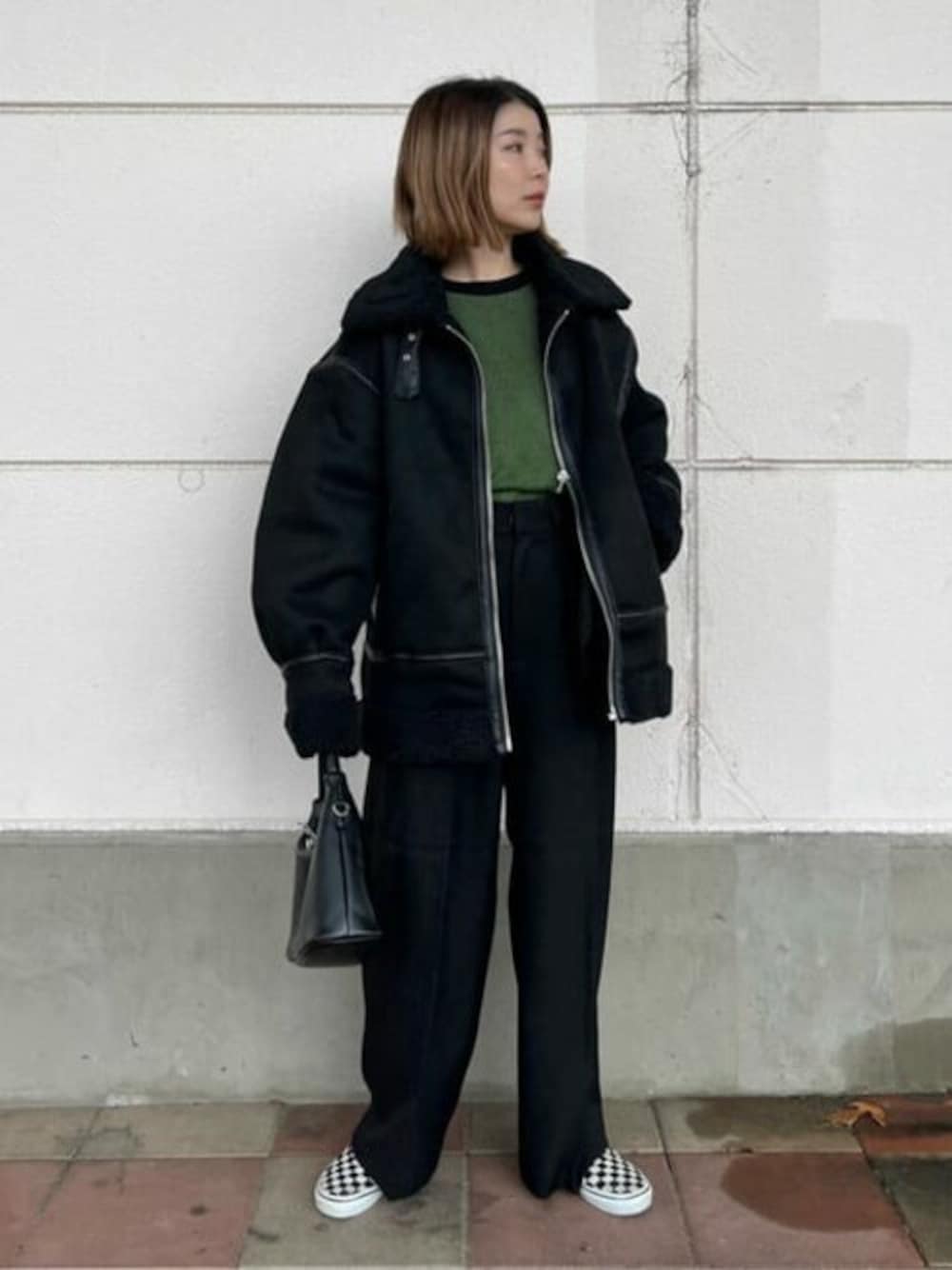 WEGO(WEGO STAFF)のムートンコート「WEGO/フェイクムートンフライトジャケット」を使ったコーディネート