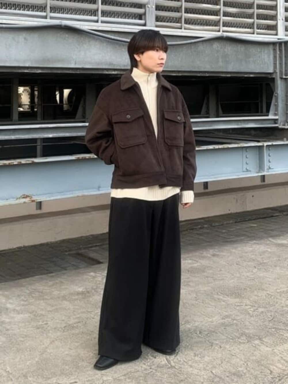 ニットメルトンZIPブルゾン使った綺麗めコーデです! 生地は表面感と柔らかさがあるシャギーニットメルトン。キレイめにもカジュアルにも落とし込めるアイテム万能アウター。 インナーにハーフジップニットを着ても着膨れしないため、アウターながらスタイリッシュな着こなしを可能にしてくれます。