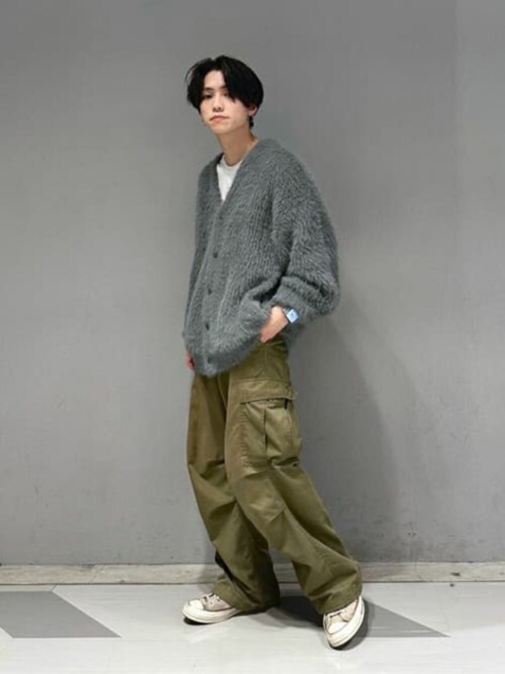 新作のフェザーカーデを使ったコーデ! 肌触りもモチモチで、気心地抜群!