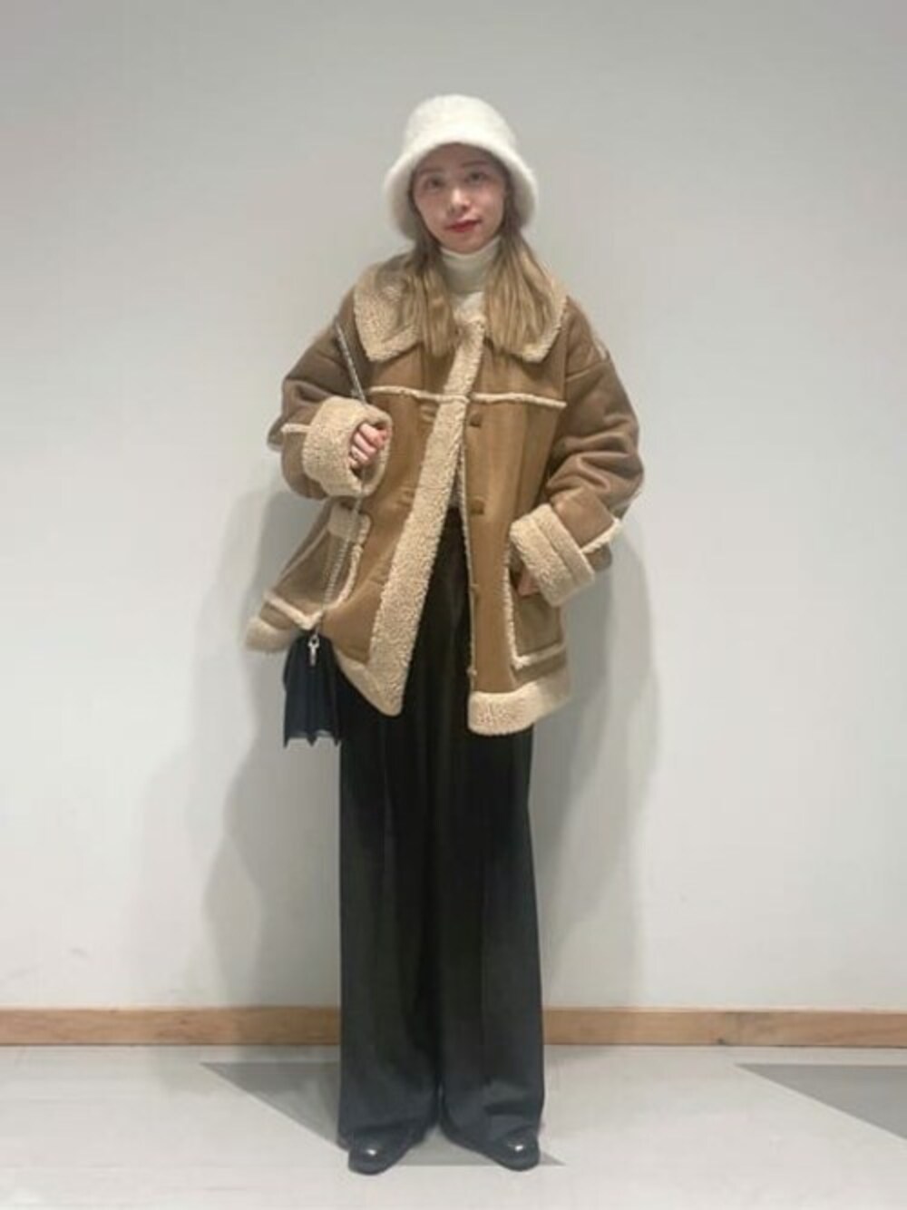 WEGO(WEGO STAFF)のムートンコート「WEGO/ボアフェイクムートンジャケット」を使ったコーディネート