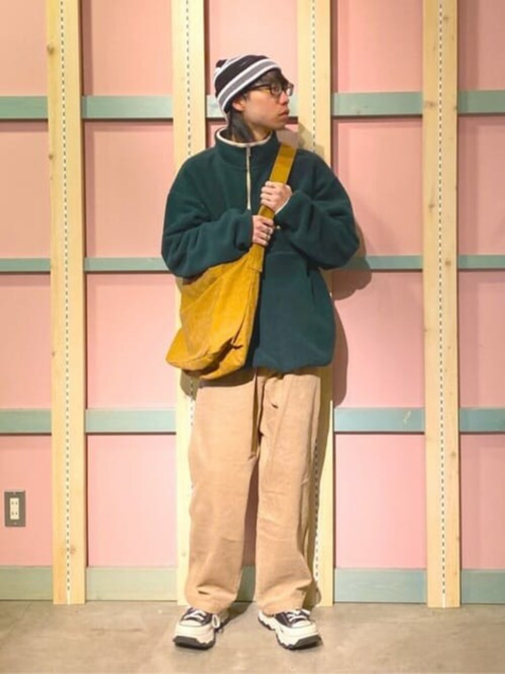 身長170cm/足のサイズ26cm/カジュアルコーデになります!! おすすめポイントはグリーンのフリースのハーフジップです!!