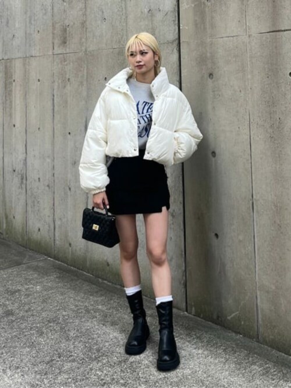 ショートアウターとミニスカートの相性◎です! 大人気のジャガードニットは着回し抜群で1枚持っているだけでオシャレ度upです!