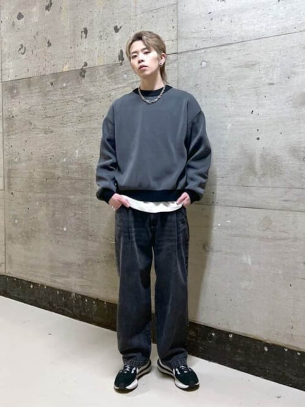 新作のリバーシブルニットをつかってストリートコーデを組みました! キレイめアイテムですが、ストリートなテイストにもバッチリ合うアイテムとなってます! 着丈が短めなのでインナーにロンTをレイヤードして着るスタイルがオススメです!