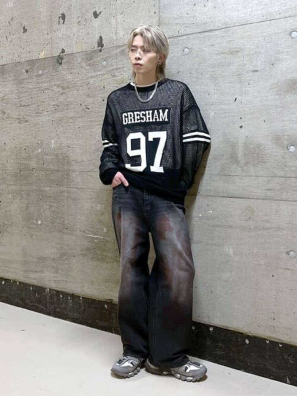 WEGO(WEGO STAFF)のニット/セーター「WEGO/ロゴメッシュジャガードニット」を使ったコーディネート
